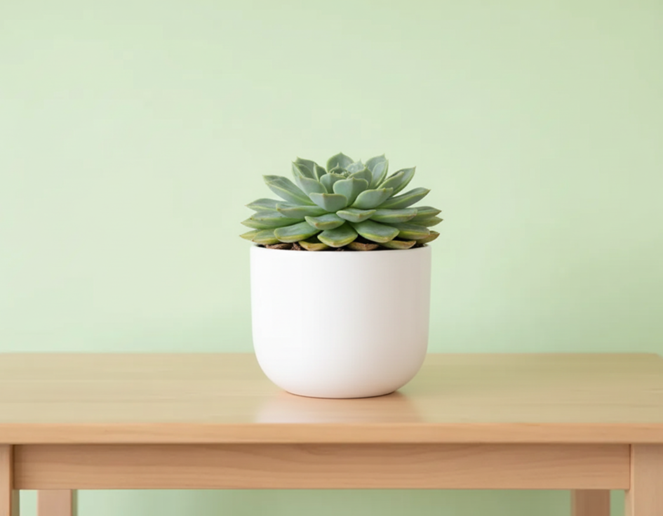 Echeveria Rosette Succulent is a classic low-growing plant with a flat, symmetrical rosette shape. Its smooth, rounded leaves form a neat spiral that sits close to the soil, making it ideal for tabletops, shelves, and windowsills. This succulent thrives in bright light and prefers well-draining soil, allowing the soil to dry fully between waterings. Its structured form creates a soft, sculptural look that works well in minimalist and modern interiors. Easy to care for and visually balanced, this plant is a staple in curated succulent collections.